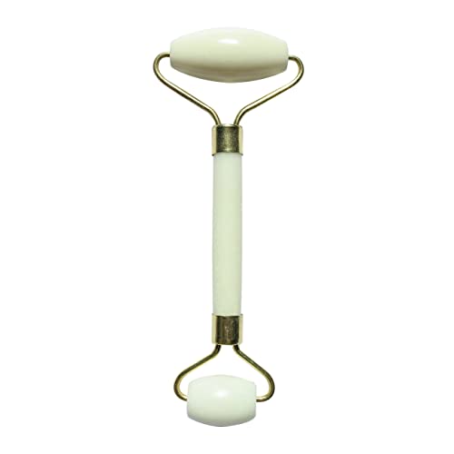 Jade Roller Blanc Masseur Visage, Rouleau de Jade en Pierre Naturelle + Housse de Protection, Anti-Age, Réduit les ridules, Stimule la circulation sanguine, Peau saine et éclatante, Sun & Sia