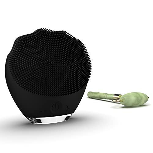 WottoCare Nettoyant Facial et Masseur en Silicone Rechargeable avec Rouleau de Jade Naturel et Pochette de Transport - Nettoyage Intelligent pour Tous Types de Peaux - Masseur Anti-Âge - Noir