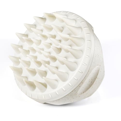 Brosse Cuir Chevelu avec Poils en Silicone Souple, Masseur en Paille de Blé pour Cheveux Humides & Secs, Gommage et Massage