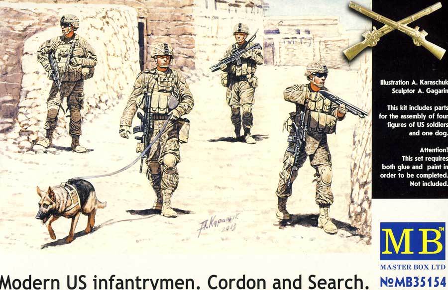 MB Masterbox - Moderne US Infanterie Chien Cordon Et Rechercher Figurines 1:3 5