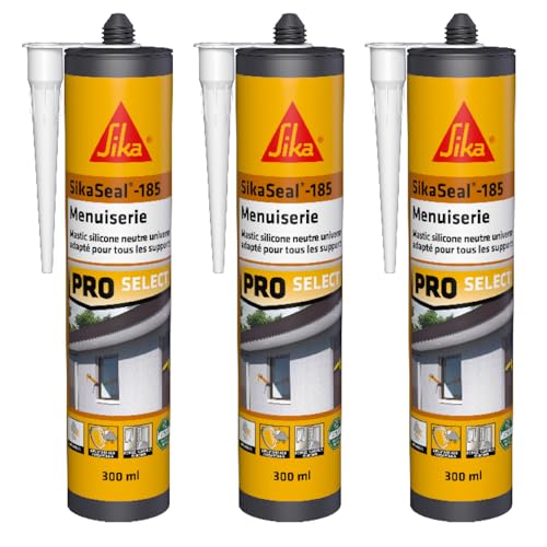SIKA - Mastic silicone universel - SikaSeal-185 Menuiserie blanc PVC - Joint de construction, menuiserie, vitrerie - Intérieur et extérieur - 300 ml (Lot de 3)