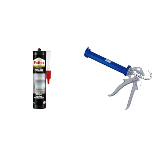 Pattex PVC & ALU, mastic colle pour fixations sur PVC & Aluminium, collage haute performance & Alyco 198805 Pistolet renforcé de 225 mm pour tubes de silicone et mastic