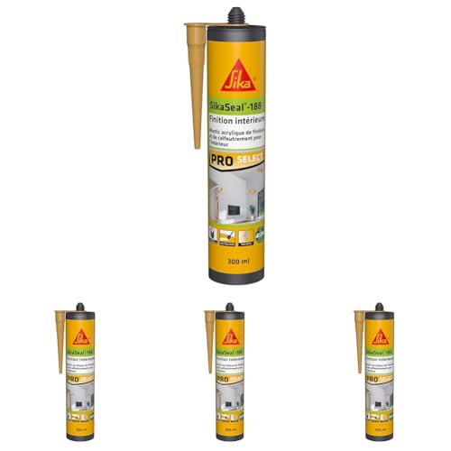 SIKA - Mastic acrylique - SikaSeal-188 Finition Intérieure bois clair - Joint statique de finition et calfeutrement - Usage intérieur - 300 ml (Lot de 4)