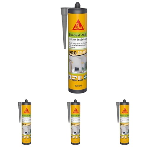 SIKA - Mastic acrylique - SikaSeal-188 Finition Intérieure gris - Joint statique de finition et calfeutrement - Usage intérieur - Sans odeur - 300 ml (Lot de 4)