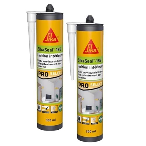 SIKA - Mastic acrylique - SikaSeal-188 Finition Intérieure blanc - Joint statique de finition et calfeutrement - Usage intérieur - Sans odeur - 300 ml (Lot de 2)