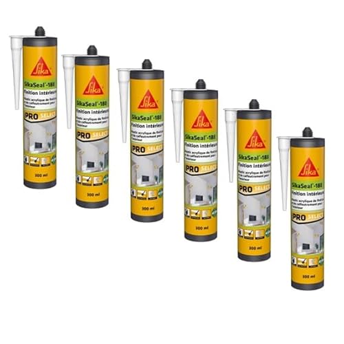 SIKA - Mastic acrylique - SikaSeal-188 Finition Intérieure blanc - Joint statique de finition et calfeutrement - Usage intérieur - Sans odeur - 300 ml (Lot de 6)