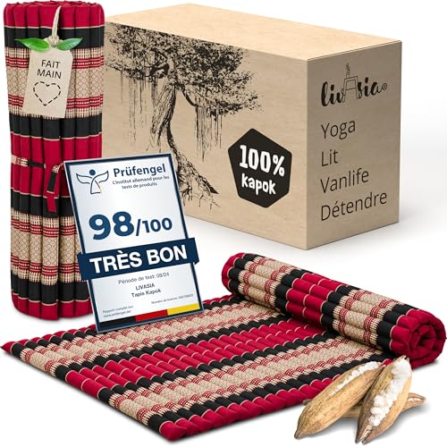 livasia tapis enroulable matelas enroulable large confortable L - 200x110x4,5cm - Lit matelas d’invité 1 personne, Lit de voyage coffre, Matelas thaï kapok jardin balcon fait main (Rouge/Noir)