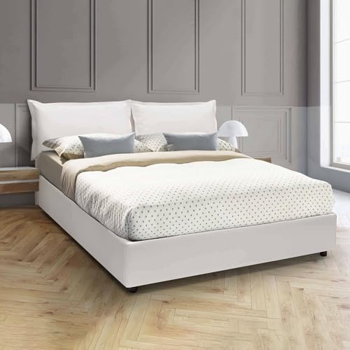 Talamo Italia - Lit double Nora, Lit coffre avec revêtement en simili cuir, 100% Made in Italy, Ouverture frontale, avec matelas 160x190 cm inclus, Blanc