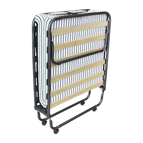 amuéblate online Lit Pliant 80 x 190 cm avec Matelas, Pliable avec Matelas d'invités, Structure en métal avec 4 Roues, Pratique et Fonctionnel