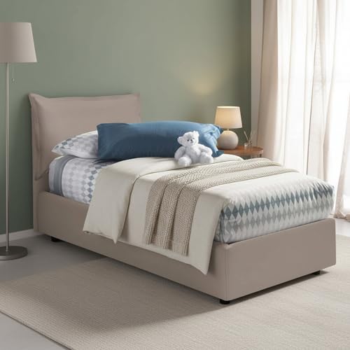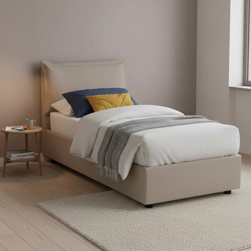 Talamo Italia - Lit simple Livia, Lit coffre avec revêtement en simili cuir, 100% Made in Italy, Ouverture latérale, adapté pour matelas 80x190 cm, Taupe