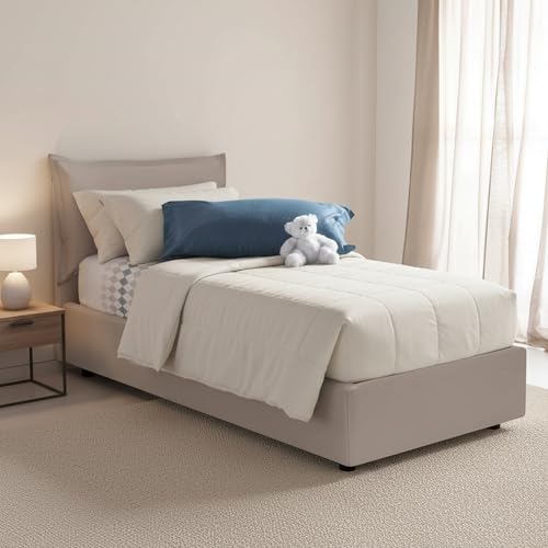Talamo Italia - Lit simple Marianna, Lit coffre avec revêtement en simili cuir, 100% Made in Italy, Ouverture latérale, avec matelas 80x190 cm inclus, Taupe