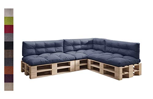 sunnypillow Set de 5 Coussins pour Palette Euro Canapé Jardin Salon - Extérieur - Gros Coussins Banquette - Différentes Tailles et Couleurs à Choisir - Matelas de Sol (Assise + Dossier) - Bleu