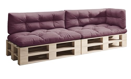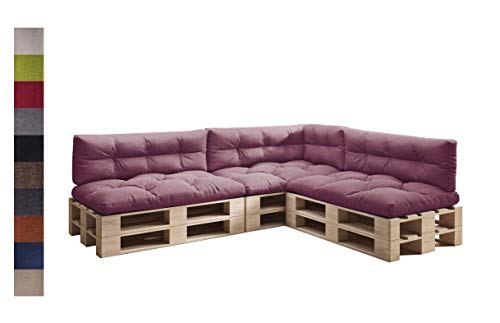 sunnypillow Set de 7 Coussins pour Palette Euro Canapé Jardin Salon - Extérieur - Gros Coussins Banquette - Différentes Tailles et Couleurs à Choisir - Matelas de Sol (Assise + Dossier) - Violet