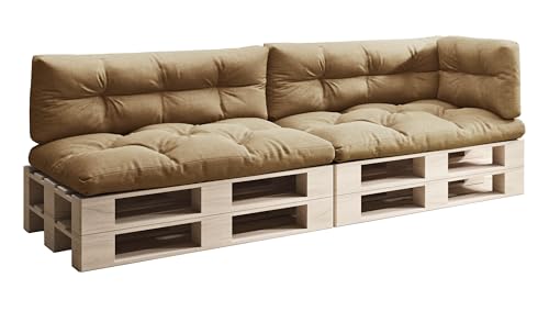 sunnypillow Set de 5 Coussins pour Palette Euro Canapé Jardin Salon - Extérieur - Gros Coussins Banquette - Différentes Tailles et Couleurs à Choisir - Matelas de Sol (Assise + Dossier) - Beige