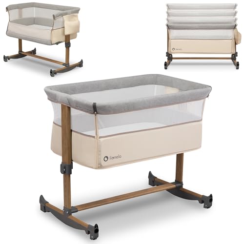 lionelo Leonie lit Bebe avec Matelas Fonction de Berceau, 5 Niveaux de la Hauteur, possibilité de Placer sous l’Angle paroi, latérale Enroulable, 2 Roues, Sac