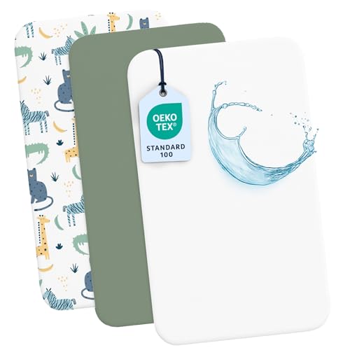 Drap Housse Cododo (Set de 2) + 1 Protège Matelas Impermeable avec Elastique - 3-en-1 - Taille 50x83 cm - Compatible avec Berceaux, Lit Matelas Cododo Bebe - pour Fille et Garçon - Motif Savane