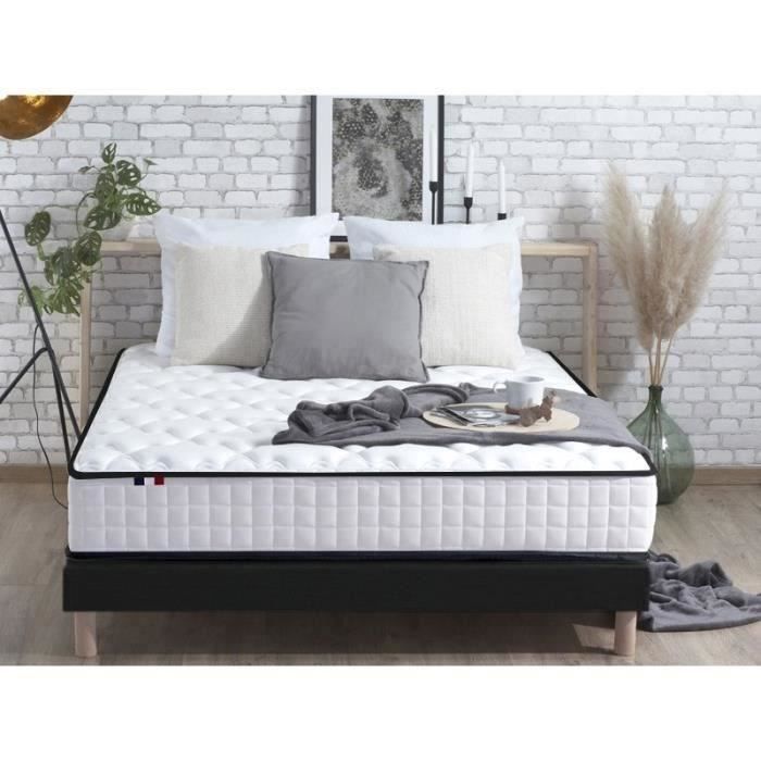 CONFORT DESIGN Amboise Ensemble Matelas et sommier 160 x 200 - Ep.20cm -Ressorts ensachés- Mousse 25 kg/m3 - Fabriqué en France