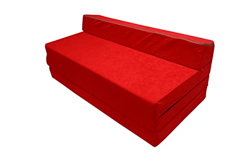 Natalia Spzoo Chauffeuse Pliable 200×120×10 cm – Matelas Pliant en Mousse, Matelas d’Appoint Compact, Fauteuil Convertible/Futon Pliable – Housse Amovible (Rouge)