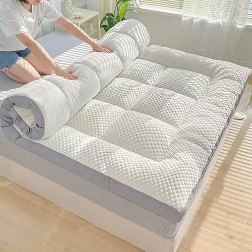 Matelas futon japonais extra épais et doux, portable, lit d'appoint confortable, lit d'appoint en peluche, taille double (gris) – Idéal pour les soirées pyjama et les petits espaces