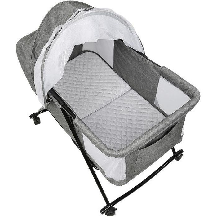 Lit avec Matelas de bebe pour voyage - Berceau Pliable à roulettes avec Moustiquaire - Gris - Yagewa