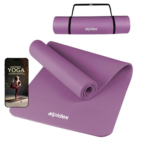 ALPIDEX Tapis de Yoga 183 x 60 x 0.8 cm Matelas Sport Gymnastique E-Book Antidérapant sans Phtalates Sangle Transport Pilâtes Gym Aérobic Stretching Entraînement, Berry