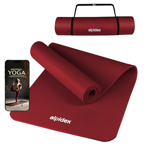 ALPIDEX Tapis de Yoga 183 x 60 x 0.8 cm Matelas Sport Gymnastique E-Book Antidérapant sans Phtalates Sangle Transport Pilâtes Gym Aérobic Stretching Entraînement, Bordeaux