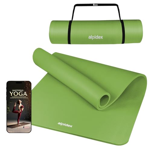 ALPIDEX Tapis de Yoga 183 x 60 x 0.8 cm Matelas Sport Gymnastique E-Book Antidérapant sans Phtalates Sangle Transport Pilâtes Gym Aérobic Stretching Entraînement, Lime