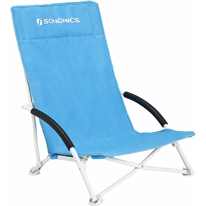 SONGMICS Chaise de Plage, Pliante, Portable, Dossier Haut, Légère, Grande Capacité de Charge, Chaise d'Extérieur avec Sac de Transport, Bleu GCB61S (Lot de 2)