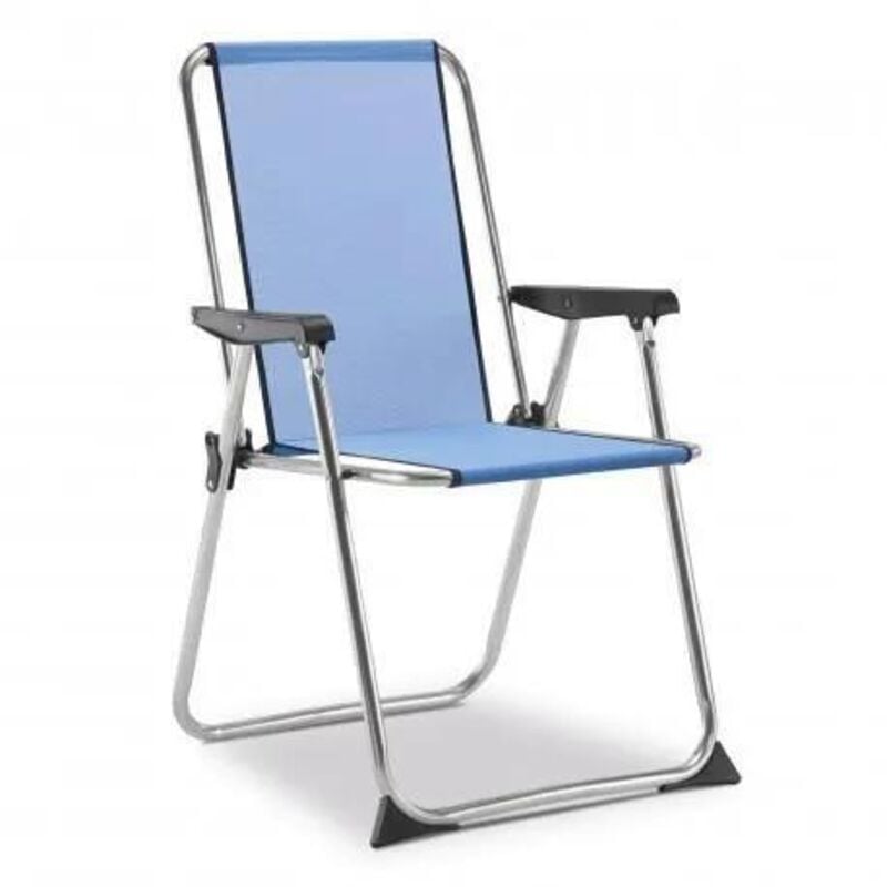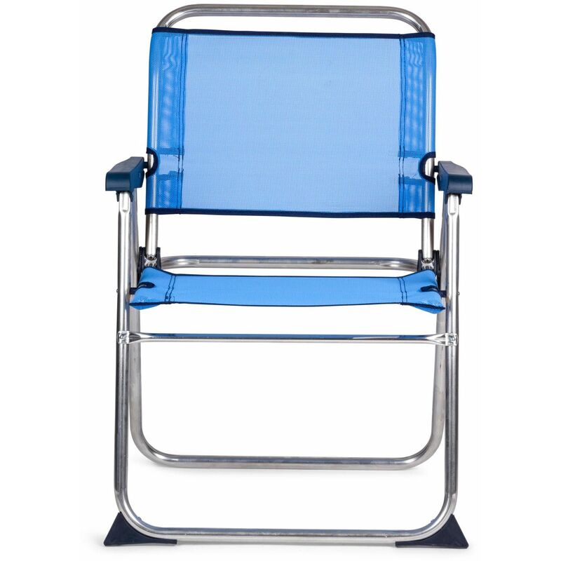 AKTIVE Beach- Chaise de Plage Pliante Haute Multipositions avec Dossier Réglable, Coussin, Protections Anti-Renversement et Poignée de Transport, Aluminium et Textilène, 48X60X90 cm, Bleu