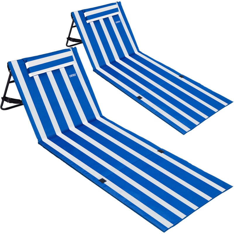 Tapis de Plage rembourré Pliable avec dossier Réglable Poche latérale Coussin Sangle de transport Matelas de plage transportable 2er Set Blau Weiß