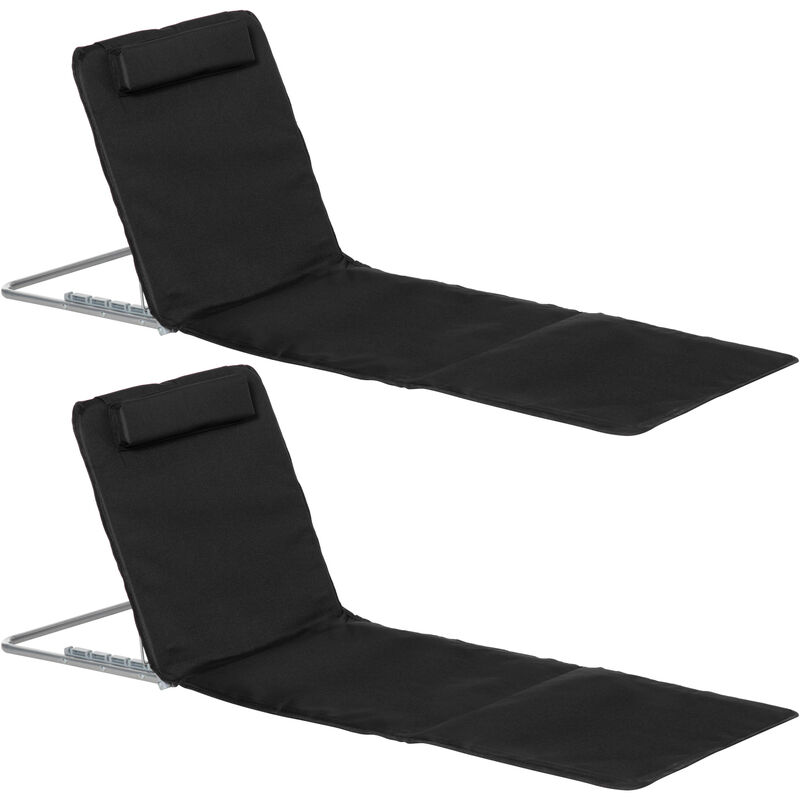 Outsunny Lot de 2 Tapis de Plage rembourré - Matelas de Plage - nattes de Plage - Dossier inclinable Multi-Positions - Sac Transport Inclus - métal Polyester PE Noir