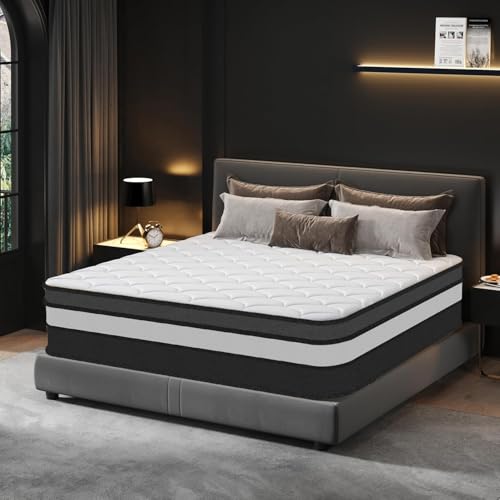 Hiepunos Matelas 140x200 cm, Épaisseur 26cm, Matelas à Ressorts Ensachés et à Mémoire de Forme, Hybride Matelas, 7 Zones de Confort, H3 Moyenne Ferme, Soutien Parfait, Respirant, (Blanc)
