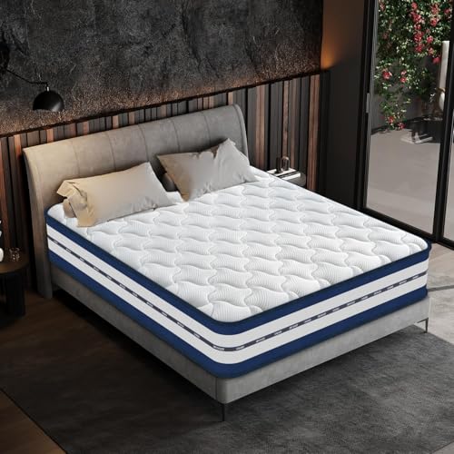 Matelas 140x200 cm Luxe, Extra-épaisse 30 CM Mousse multicouche+Bleu Latex+Mousse à mémoire de Forme, Noyau à ressorts, Ergonomique, H3 Mi-ferme,7 Zones, Hypoallergénique, Respirant, Haute résilience