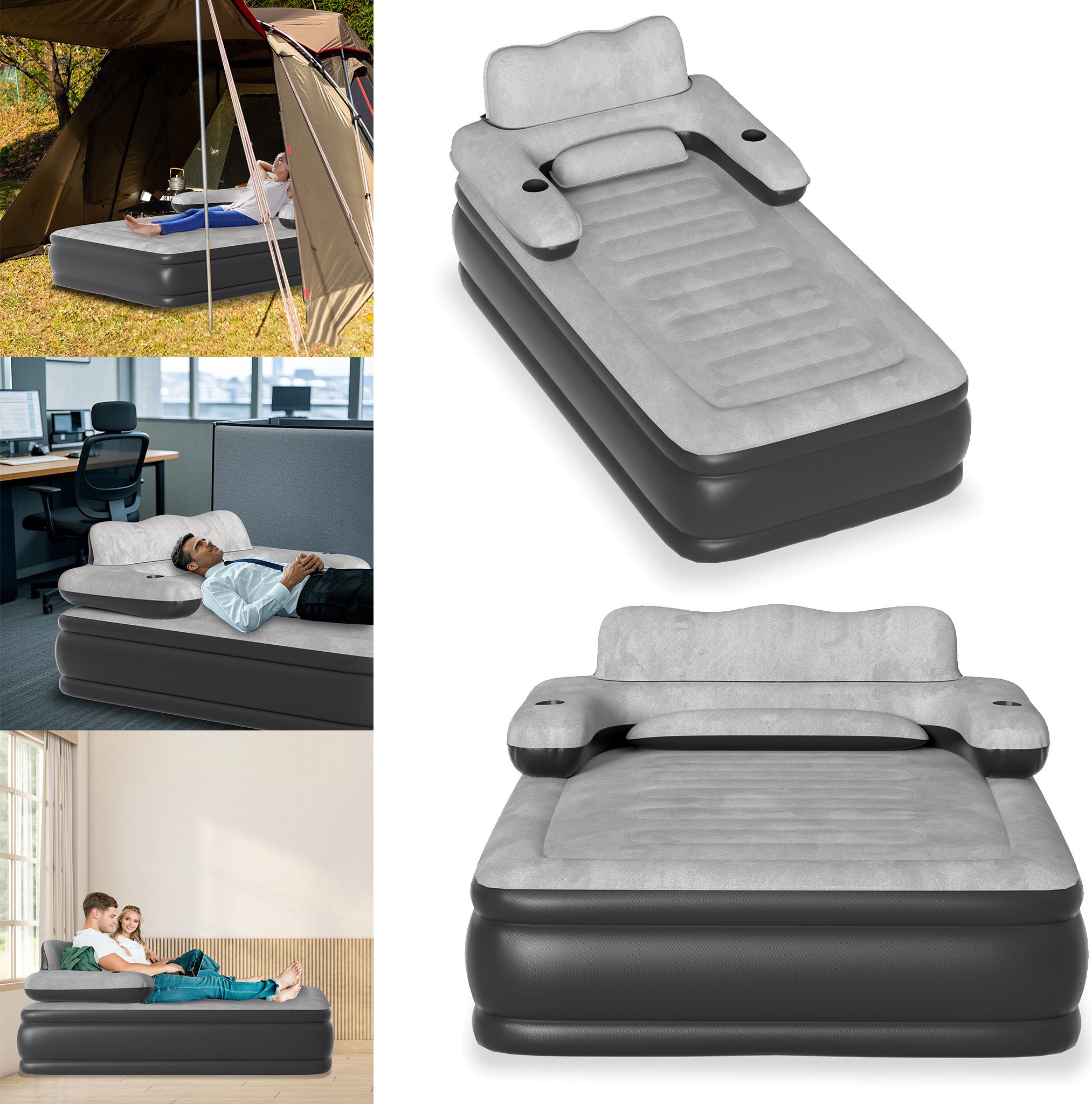 LZQ Lit d'appoint pour 2 personnes avec dossier, lit gonflable autogonflant, matelas gonflable avec pompe intégrée, lit gonflable 195 x145 x 42 cm, camping