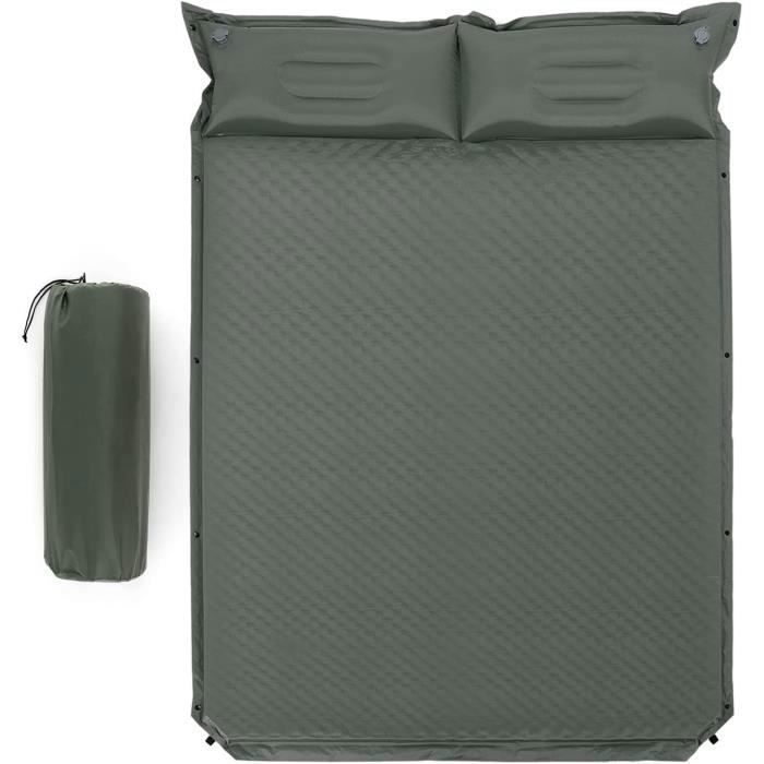 Matelas de Camping Autogonflant 2 Personnes Matelas de Couchage Gonflable avec Pompe à Pied 2 Oreillers Sac Vert
