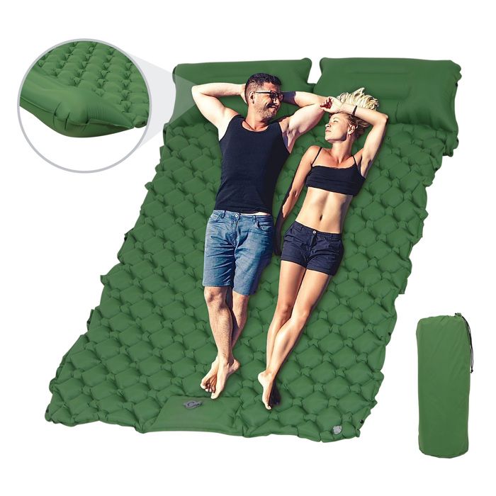 Matelas Gonflable 2 Personnes - GOPLUS - Matelas Camping/Plage Autogonflant - 2 Oreillers en U - 10 Boutons Connectables - Vert