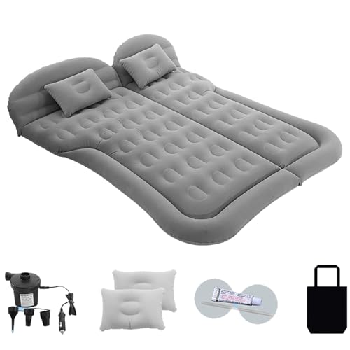 Ausla Matelas gonflable de voiture pour siège arrière, lit gonflable SUV pliable avec coussins et pompe à air électrique, pour voyages, camping, 174 x 126 cm (Gris)