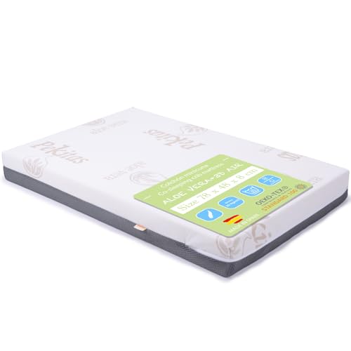 PEKITAS Matelas berceau hybride réversible, 48 x 78 cm, 8 cm d' épaisseur, housse amovible lavable, dureté ferme, respirant et anti-étouffement