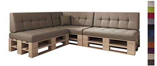 sunnypillow Set de 8 Coussins pour Palette Matelas Extérieur - d’Assise 120 x 80 x 15 cm + Dossier 120 x 40 x 20/10 cm - Confortable Coussins pour Canapé Jardin, Salon, Terrasse, Balcon - Beige