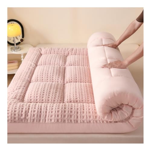 PeKmaR Matelas de Sol Tatami Simple Épais Futon Japonais Portable Enroulable Pliable pour Garçons Filles Dortoir Étudiant Adulte, Rose, 90x190cm