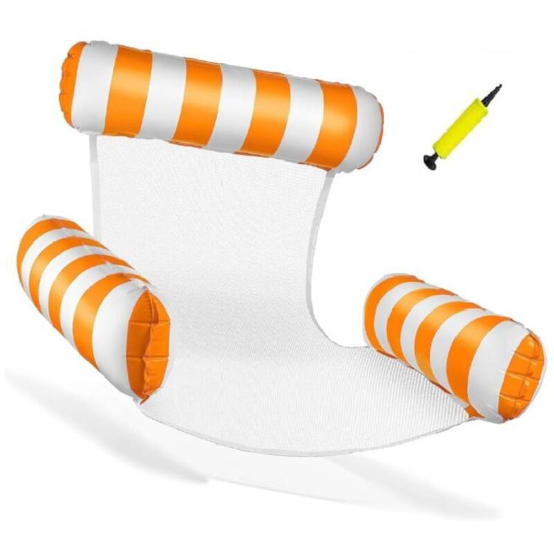 PQETBV 2 Pièces Bouee Piscine Adulte, Matelas Piscine Gonflable, Hamac à Eau avec Filet et Pompe à Air, Pliable Flottant Hamac Gonflable, Hamac de Piscine pour Adultes et Enfants, Piscine et Plage
