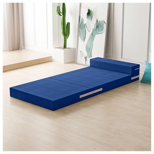 MAXYOYO Matelas futon Portable Pliable, en Tissu hypoallergénique et en Mousse à mémoire de Forme avec poignée et Fermeture éclair pour extérieur, intérieur, Voiture d'invités (Bleu, 71x190 cm)