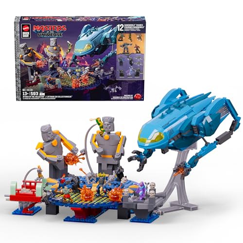 Mattel Brick Shop Masters of The Universe L’Attaque du Collectionneur Les Maîtres de l’Univers Coffret de Construction avec 593 pièces et 12 Figurines pour collectionneurs dès 13 Ans, JMB30