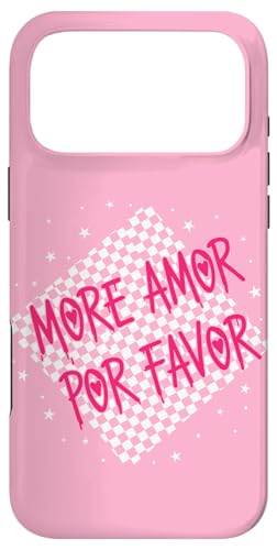 More Amor Por Favor Cœur Motif Damier Rose Coque pour iPhone 17 Pro Max