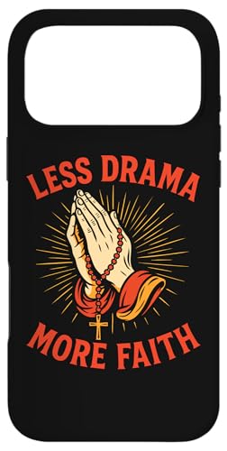 Chapelet avec Citation « Less Drama More Faith » Coque pour iPhone 17 Pro Max