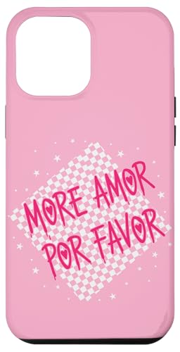 More Amor Por Favor Cœur Motif Damier Rose Coque pour iPhone 13 Pro Max