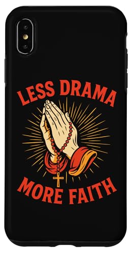 Chapelet avec Citation « Less Drama More Faith » Coque pour iPhone XS Max