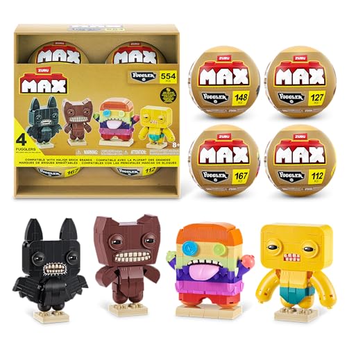 Max Build More Premium Collection Fugglers (Pack de 4) de ZURU – Jouet de Déballage Surprise & Briques de Construction Miniatures avec jusqu'à 554 Pièces, Designs Amusants à Construire & Exposer