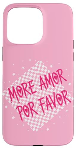 More Amor Por Favor Cœur Motif Damier Rose Coque pour iPhone 15 Pro Max