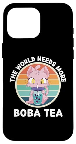 Neko Vintage Kawaii Cat The World Needs More Boba Tea Lover Coque pour iPhone 16 Pro Max